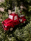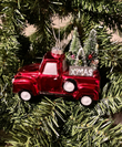 Add a little country flair to your holiday tree with this festive glass ornament. This ornament is quite the festive holiday decor! This red farm truck carrying a load of evergreens decked out in lights is sure to bring cheer to your home this Christmas. Get yours today!