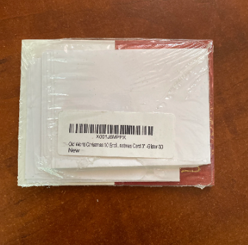These cards feature a festive girl holding a Christmas wreath. They are accented with glitter and come in a set of 10 cards that measure 3.5 inches tall and 2.25 inches wide when folded and comes with little envelopes. These are great gift card holders or gift tags for coworkers, friends, and family!