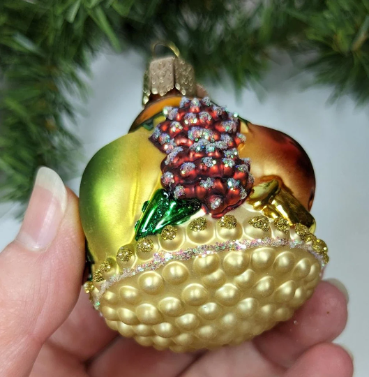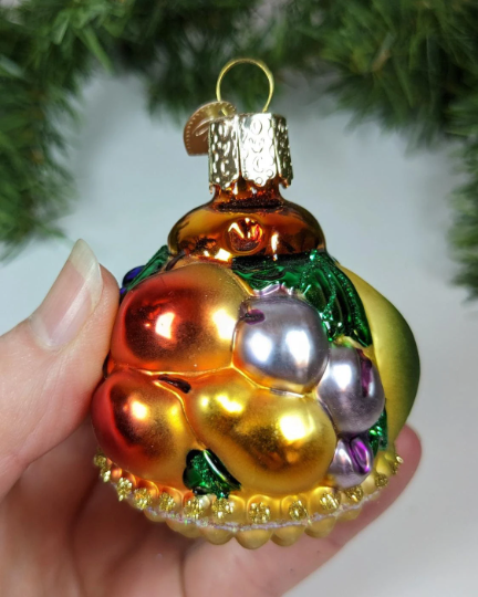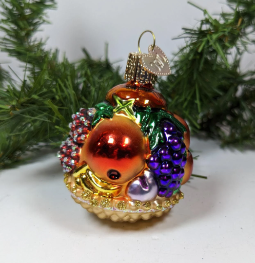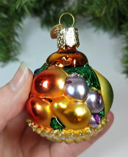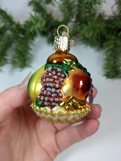 Retired Old World Christmas Fruit Basket Glass Christmas Ornament. What a rare find and absolutely beautiful with wonderful detail, color and sparkle. Would be perfect for the health nut in your life. Makes a great hostess or heirloom gift. Wonderful addition to your vintage Christmas ornament collection. This is a RETIRED old World Christmas ornament, and they are very hard to find anymore.