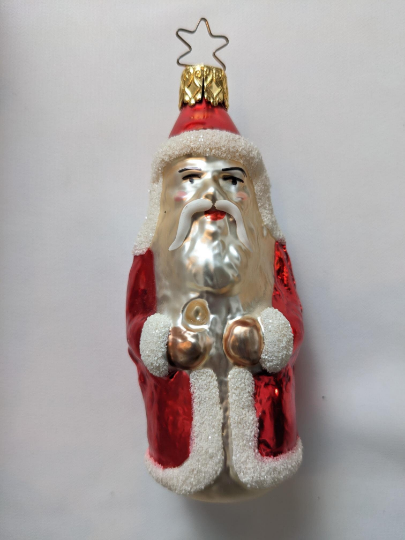 Gorgeous Santa Claus Christmas Ornament made by Inge-Glas in West Germany. What a rare find and absolutely beautiful with wonderful color. Perfect gift for the Christmas or Santa lover in your life. Great addition to your vintage Christmas ornament collection. This is a RETIRED old World Christmas ornament, and they are very hard to find anymore.