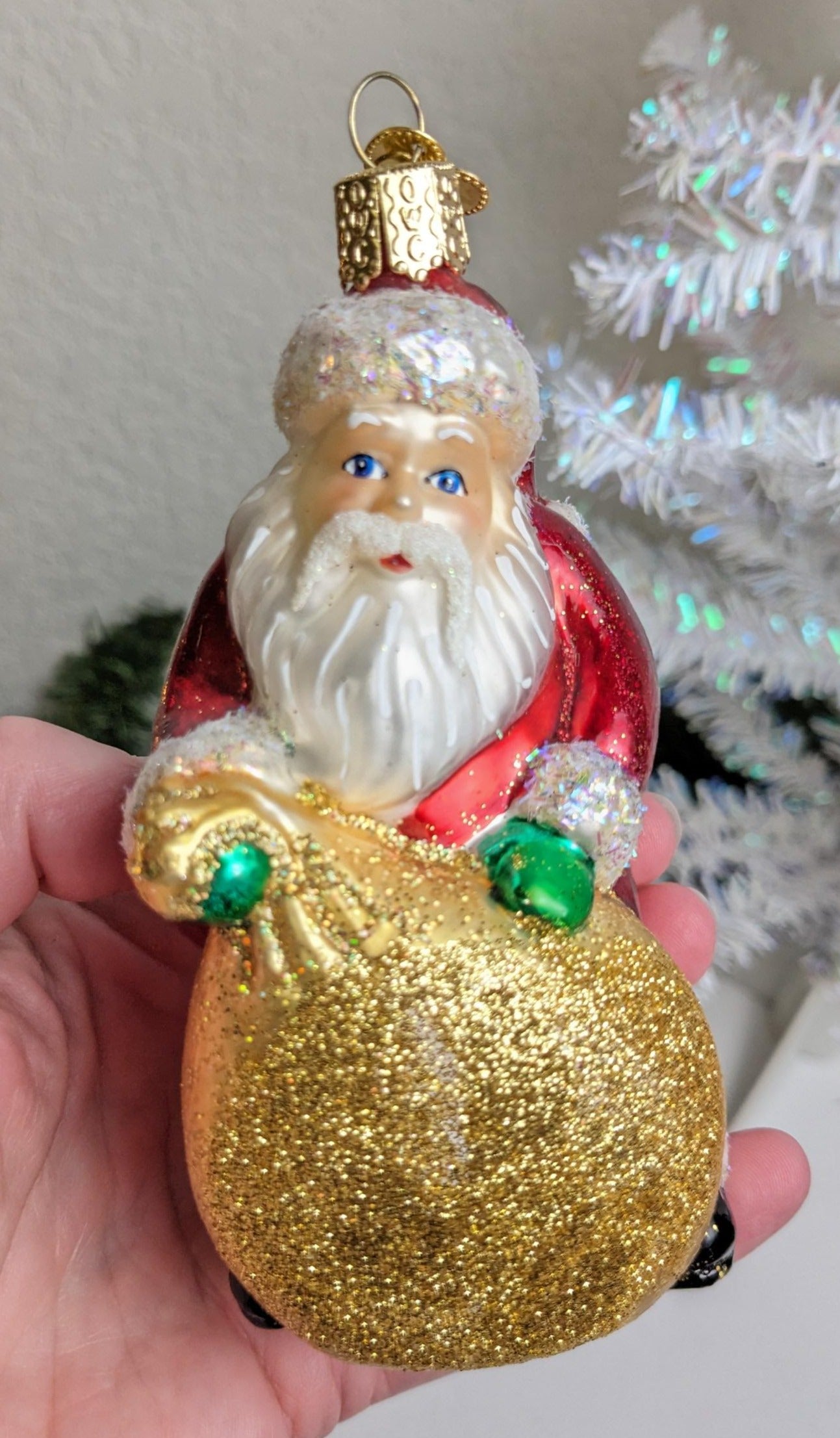 Retired Santa Claus Old World Christmas Glass Christmas Ornament. What a rare find and absolutely beautiful with wonderful detail, color and sparkle. Makes a great hostess or heirloom gift. He is in great condition with light scratches. Wonderful addition to your Christmas ornament collection. Made Of Glass. Indoor Use Only.
