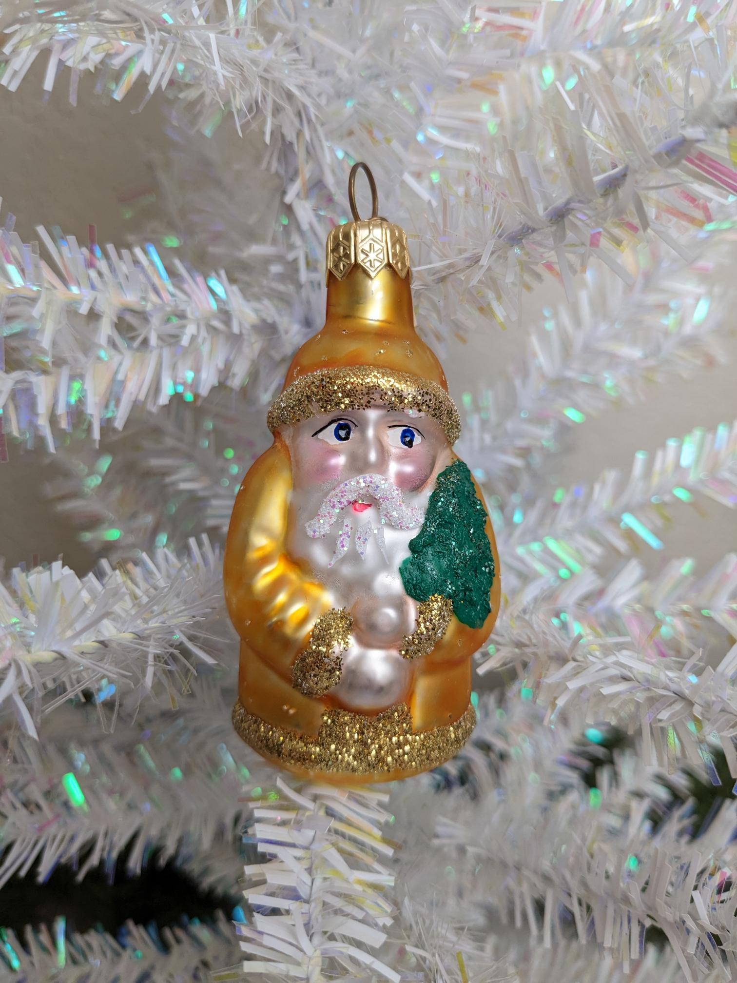 Vintage Dept 56 Santa Claus with Tree Glass Christmas Ornament, made in Poland. What a rare find and absolutely beautiful with wonderful detail, color and sparkle. Perfect for the Santa fan in your life.