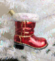 New Santa's Boot Old World Christmas Glass Christmas Ornament. What a rare find and absolutely beautiful with wonderful detail, color and sparkle. Makes a great hostess or heirloom gift. Wonderful addition to your Christmas ornament collection. Made Of Glass. Indoor Use Only.
