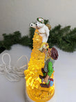 This is absolutely gorgeous with wonderful detail and color! Featuring a polar bear angel sitting at the top of the Christmas tree with an elf handing him a tree topper, so cute!