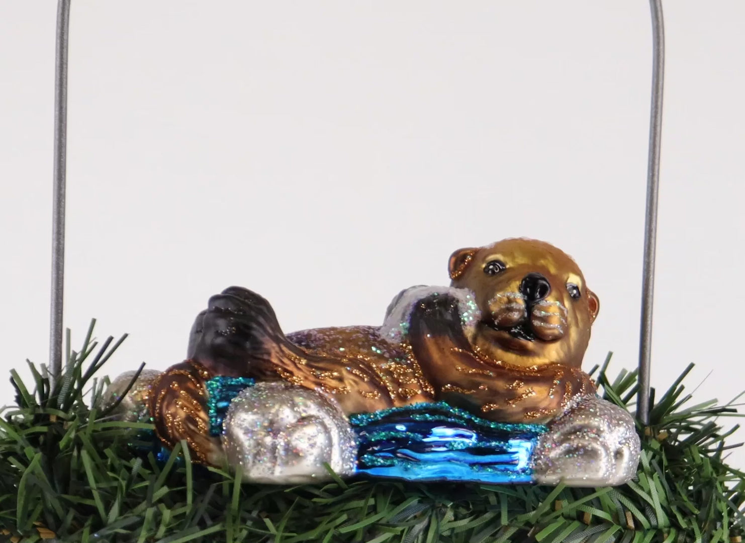 Sea Otter Blown Glass Tree Ornament by Old World Christmas - Clip-on style