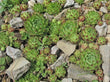 Sempervivum globiferum ssp. hirtum 'Hedgehog' is one of the largest of the "rollers". The rosette is bright green with burgundy on the tips of its many long, spiky leaves. This is a full, densely packed rosette with upright, incurved leaves. The offsets are round and appear on very delicate stolons, so they easily roll off the mother plant to find somewhere to root.