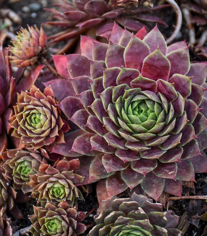 - Appearance: The evergreen rosettes of Sempervivum ‘Peggy’ change color throughout the seasons. In spring, the leaves are purple, transitioning to deep red in summer. Fall and winter colors are more subdued, ranging from mahogany to brown.