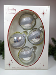Vintage Set of 4 Silver Micro-Bead Glass Christmas Ornaments. These are absolutely gorgeous. Shiny silver ornaments with a swirl micro-beaded and sparkle accent. Very pretty.