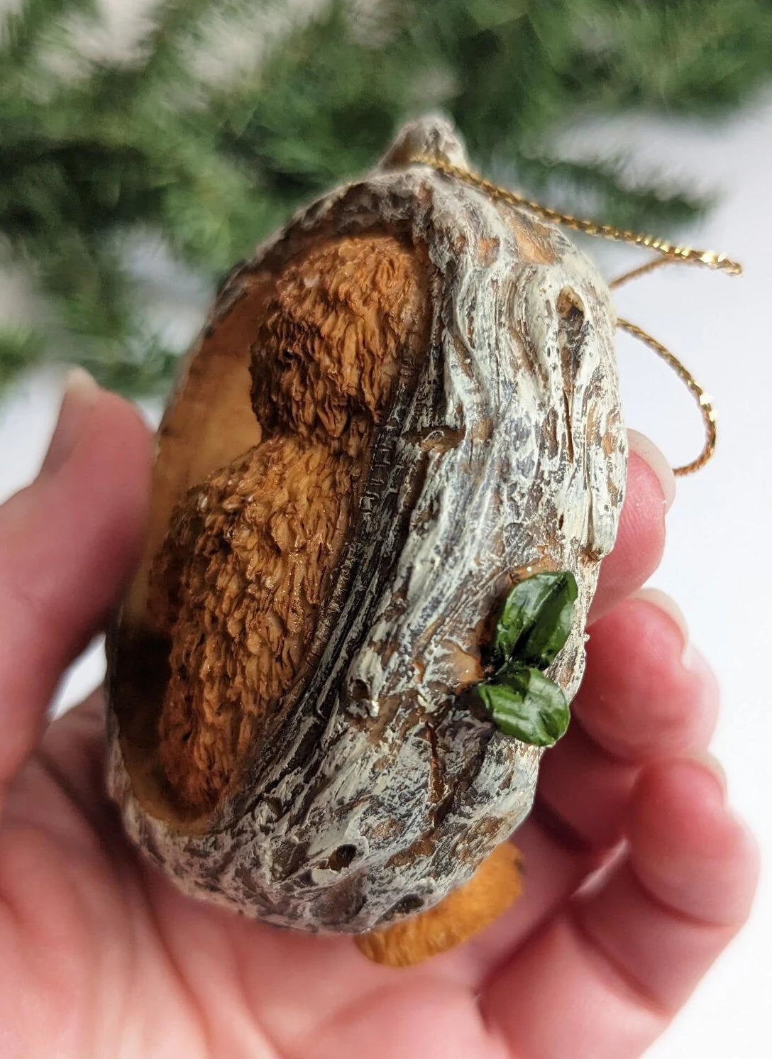 Vintage Sleeping Bears Christmas Ornament. This is so cute! This ornament features a mama bear and cub sleeping together in a hollow tree, just darling. Perfect for the bear lover in your life.