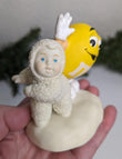 Beautiful Dept 56 'I'm Nuts About Dancing' Snowbabies and M&M's Figurine. This is so cute with beautiful detail and texture. Little snowbabie with stunning blue eyes dancing with a yellow M&M, just darling.