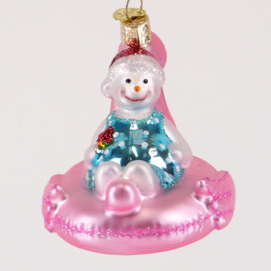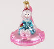 Snowman on Pink Flamingo Pool Float - Blown Glass Tree Ornament by Old World Christmas