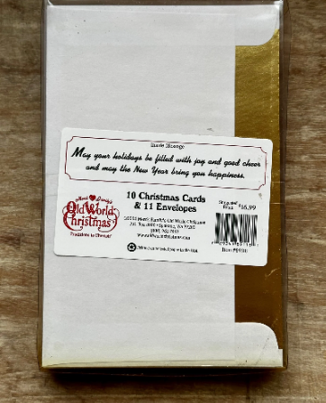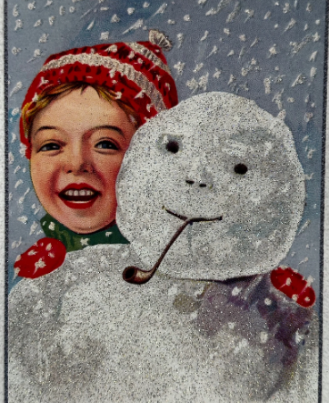 These cards depict a snowman with a cob pipe and a child in a red hat and gloves. This set includes 10 cards accented with glitter. These are great for Christmas cards to coworkers, friends, and family!