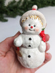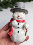 They are in great condition with normal wear from use and storage. The snowman is missing part of his scarf, but you cannot see if from the front. Please see last picture. Would look fantastic in any Christmas Village, shelf or mantel. Wonderful addition to your Christmas collection. Hurry we only have 1 set in stock.