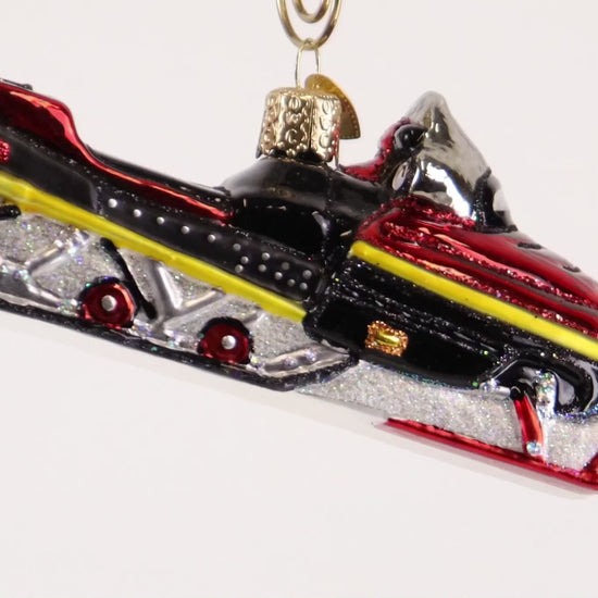 Red Snowmobile Blown Glass Hand Painted Tree Ornament by Old World Christmas