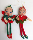 Vintage 1950's Elf Pixie Christmas Ornaments, made in Japan. This is a rare find. Set of 2 posable elf pixies with sockinette faces, so cute. They are in great condition, please see all pictures.