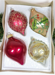 Vintage Teardrop Glass Christmas Ornaments. Set of 4 mixed vintage glass teardrop Christmas ornaments. There is shiny, frosted and sparkle. You will receive 2 pink ornaments, 1 gold with green and red gem accents and 1 frosted with gold accents and stunning sparkle. The glitter is very sparkly, and ornaments are in excellent vintage condition with very slight wear. Please see pictures.