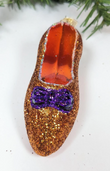 New Old World Christmas The Witches Slipper Glass Christmas Ornament. Wow, this is absolutely gorgeous, pictures do not do this ornament justice! This stunning slipper has a beautiful purple bow and orange sparkle accents, so pretty.