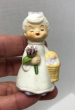 Set of 2 of the sweetest little girl figurines with baskets and flowers. These figurines are China and hand painted. 2 inches tall and 1 inches wide and deep.