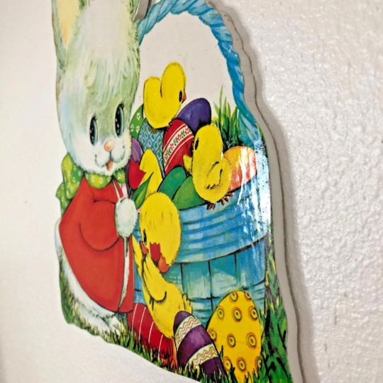 Vintage 1960s Wooden Die Cut Easter Basket Wall Hanging