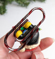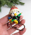 What a great find! This ornament features a darling penguin wearing a Santa's hat holding a pencil while sitting on a paperclip, so cute!