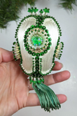 Vintage white, green and gold beaded pushpin egg shaped Christmas ornament.