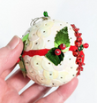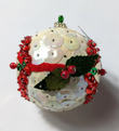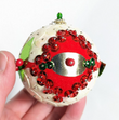 Vintage red, green and white beaded pushpin Christmas ornament.