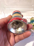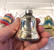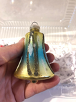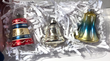These hand crafted beauties have all of their glitter and shine. Stenciled and sparkly to catch the light. Rare Bell Shape ornaments, and one features the original glass bead clapper.