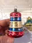 Set of 3 Colorful Vintage Stenciled Bell Shaped Christmas Ornaments.
