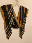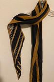 Beautiful and elegant vintage scarf. This 1980s square silk scarf by Bill Blass is black, tan and white with his logo name on it (see image above for location) The scarf features stripes both thin and thick and polka dots as well. This scarf has a hand rolled edge and is made of silk.