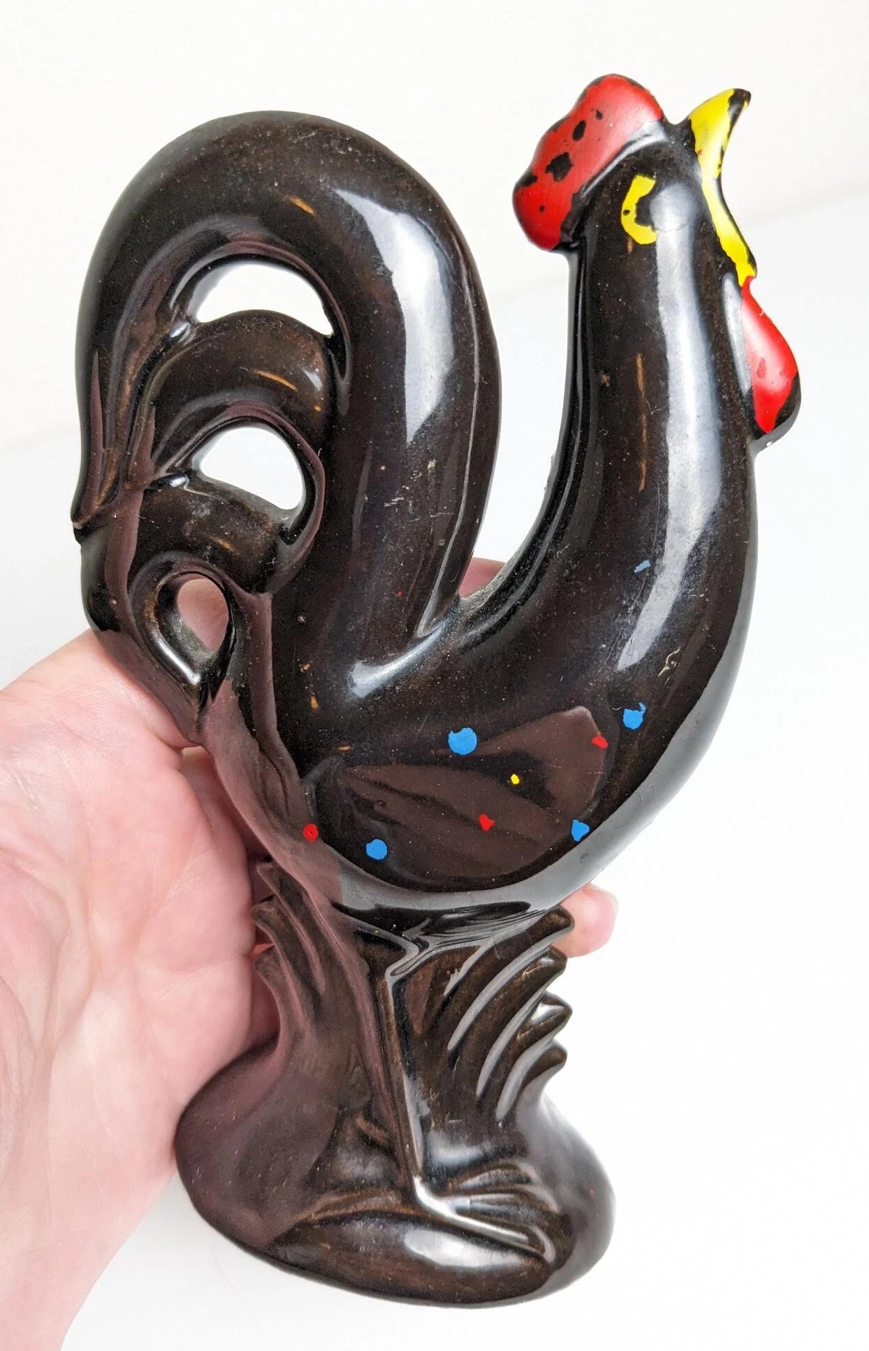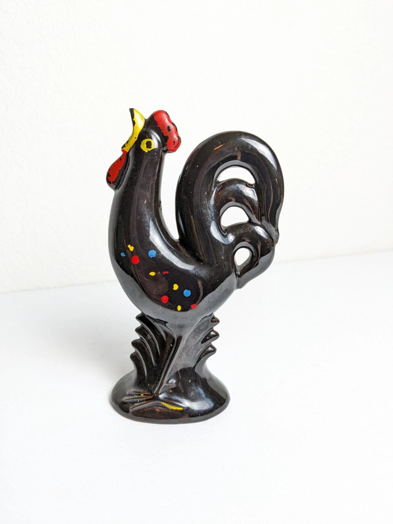 This is gorgeous! Perfect for the rooster or chicken fan in your life. This darling rooster has a yellow beak, red comb and gobbler with a few polka dots on his body, really cute.