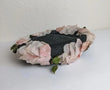 Fabulous fascinator black woven hat with lovely pink petals on top of the hat with a black veil, very pretty.