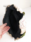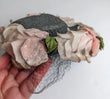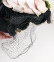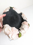 Vintage Black Woven Hat with Veil & Flower Petals Fascinator Hat
