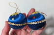 Vintage set of 2 small blue Christmas ornaments.