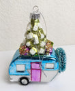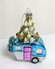 It's all decked out with a bottlebrush wreath and a Christmas tree, along with all the neat features of a realistic trailer. This whimsical glass ornament makes a great gift for any travel trailer enthusiast. Measuring 4 1/4" x 3 1/2".