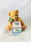 Vintage Cherished Teddies Figurine, dated 1995, featuring a little bear with a 'X' letter block. 'T is for Teddies' collection by Enesco.