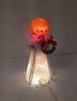 She has 9 multi-color lights. This Angel is in great condition and when plugged in her lights blink (easy fix if you want them to stay on). A must have for that Retro or MCM look. Hurry she won't last! Measuring 8" tall.