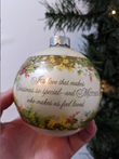 Beautiful Vintage 1979 Hallmark Mother Glass Ball Christmas Ornament. The front reads "It's love that makes Christmas so special - - and MOTHER who makes us feel loved." Beautiful sentiment for the holidays.