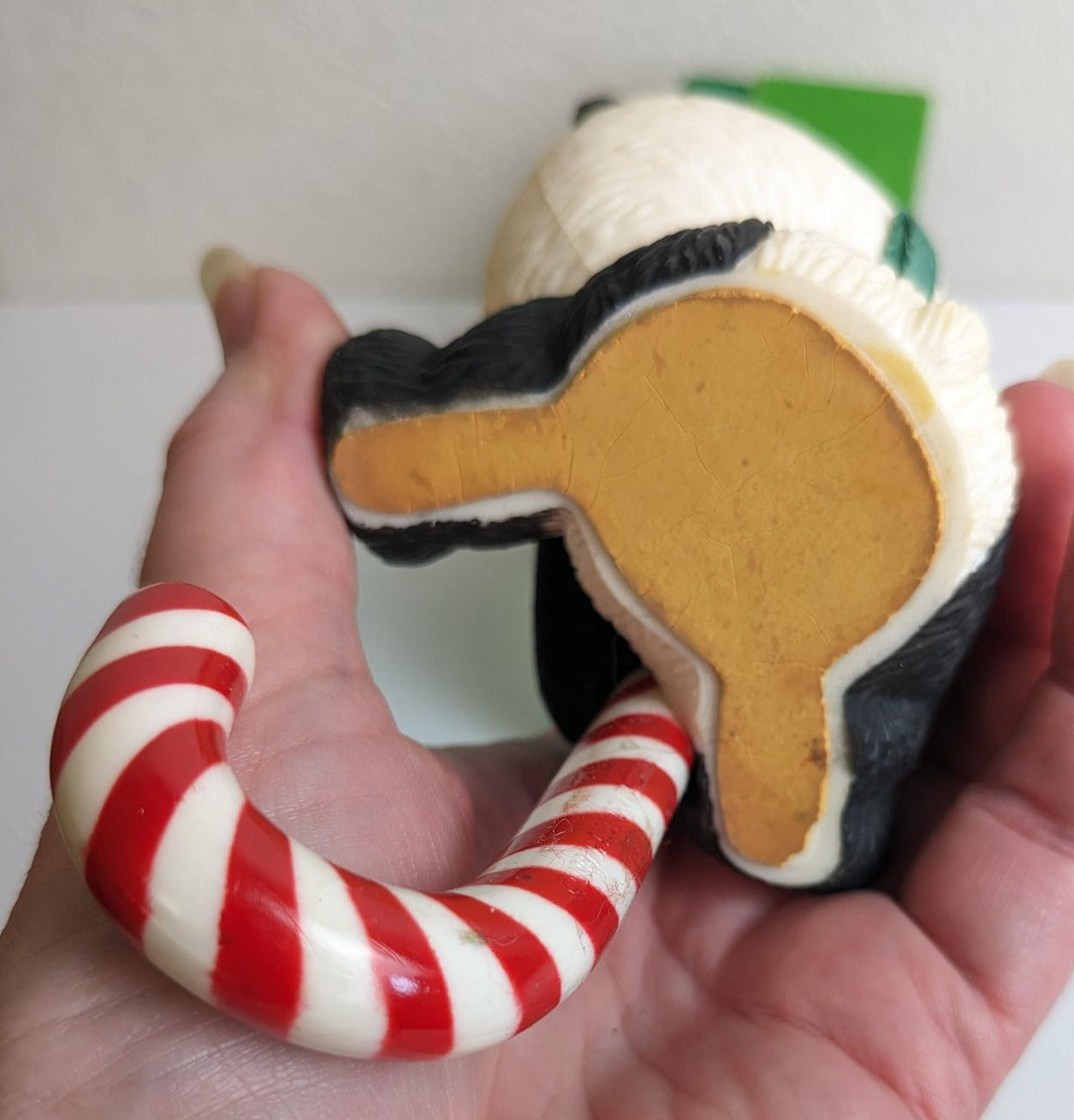 Vintage Hallmark Panda Bear Stocking Hanger. He is darling with his brown eyes and green bow holding a candy cane, so cute. He is in great condition with no chips or cracks. Please see pictures.