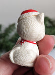 Vintage Russ Berrie I Love you Santa Cat Miniature. This is a great find. Beautiful white kitty cat wearing a Santas hat with a tag around its neck that says, "I Love You", so cute! Perfect for the cat lover in your life.