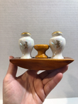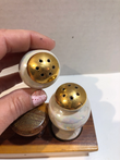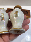 Vintage Iridescent Salt and Pepper Shaker Set with Wood Base