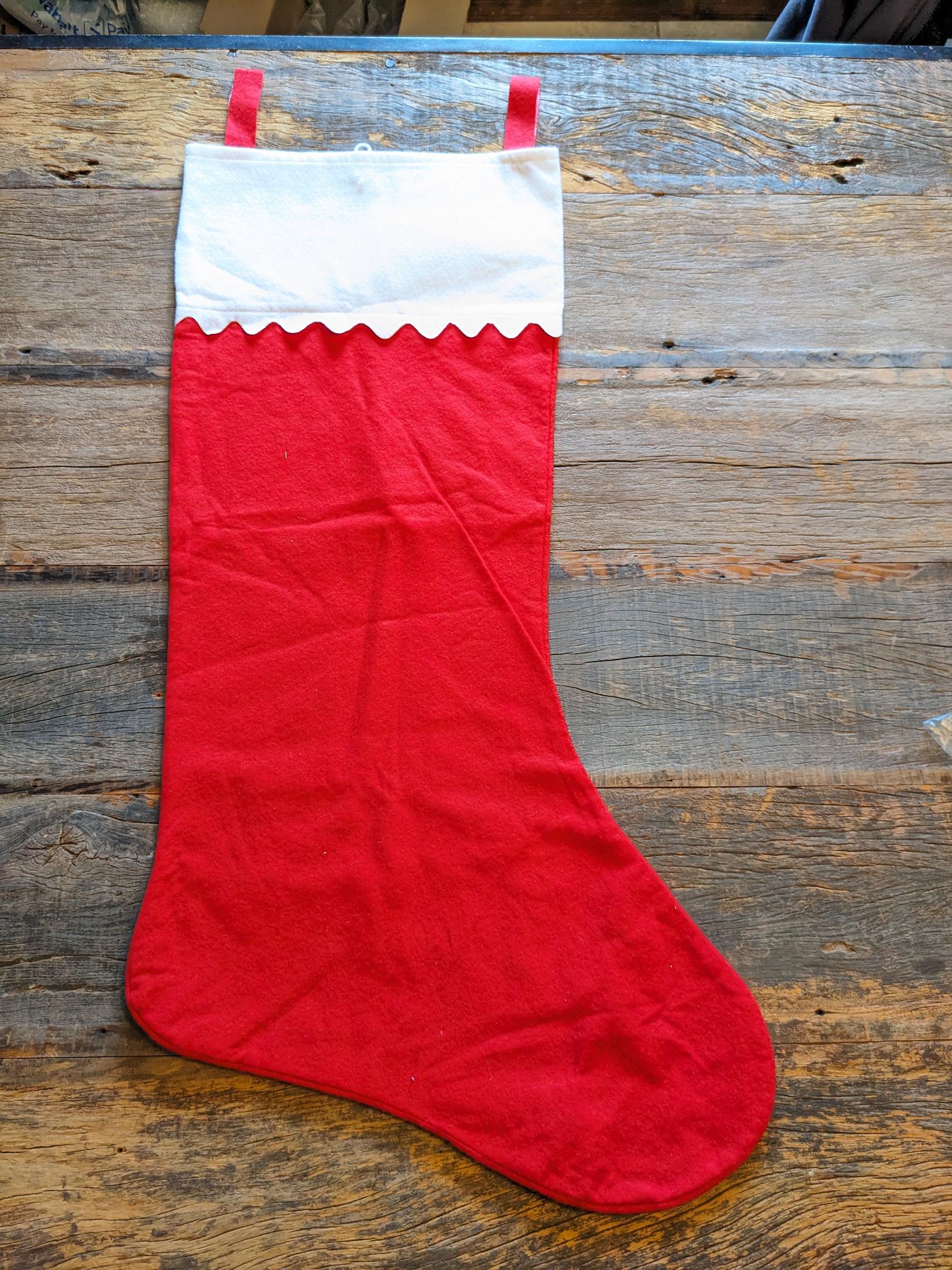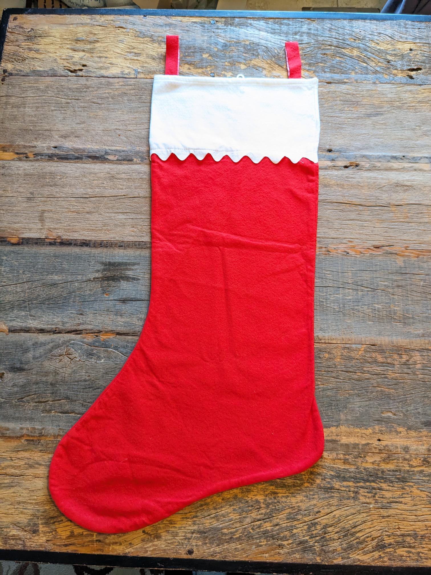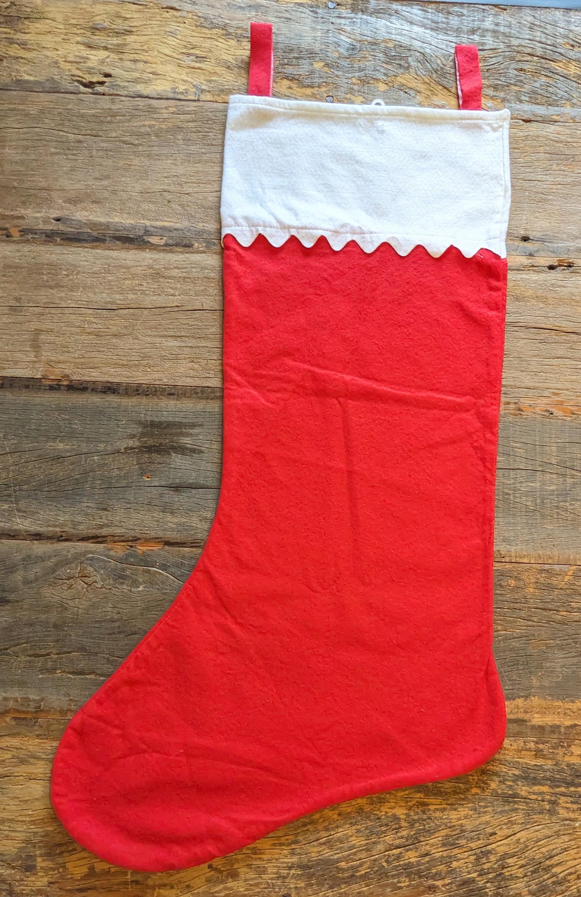 This is such a gorgeous stocking. It features white curvy cuff and boasting a large 36" x 19". Perfect for those larger gifts Santa brings. This stocking is in excellent condition, has a wonderful vintage feel and perfect for anyone this holiday season.