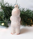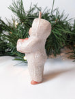 Beautiful Pink Girl with Gift Christmas Ornament. This is so cute! Beautiful detail in this ornament. Little girl in a soft pink snowsuit with sparkle accents holding a gift. Her face is beautifully detailed with gorgeous eyelashes and a little curly q. Darling!