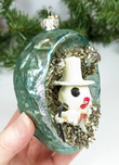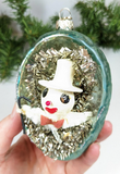Vintage Mercury Glass Snowman Diorama Christmas Ornament