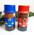 Vintage set of 2 Nutcracker Christmas Tins. These are absolutely gorgeous! You will receive 1 blue nutcracker and 1 red nutcracker. Perfect for gifting baked goods, money, gift cards, the possibilities are endless.