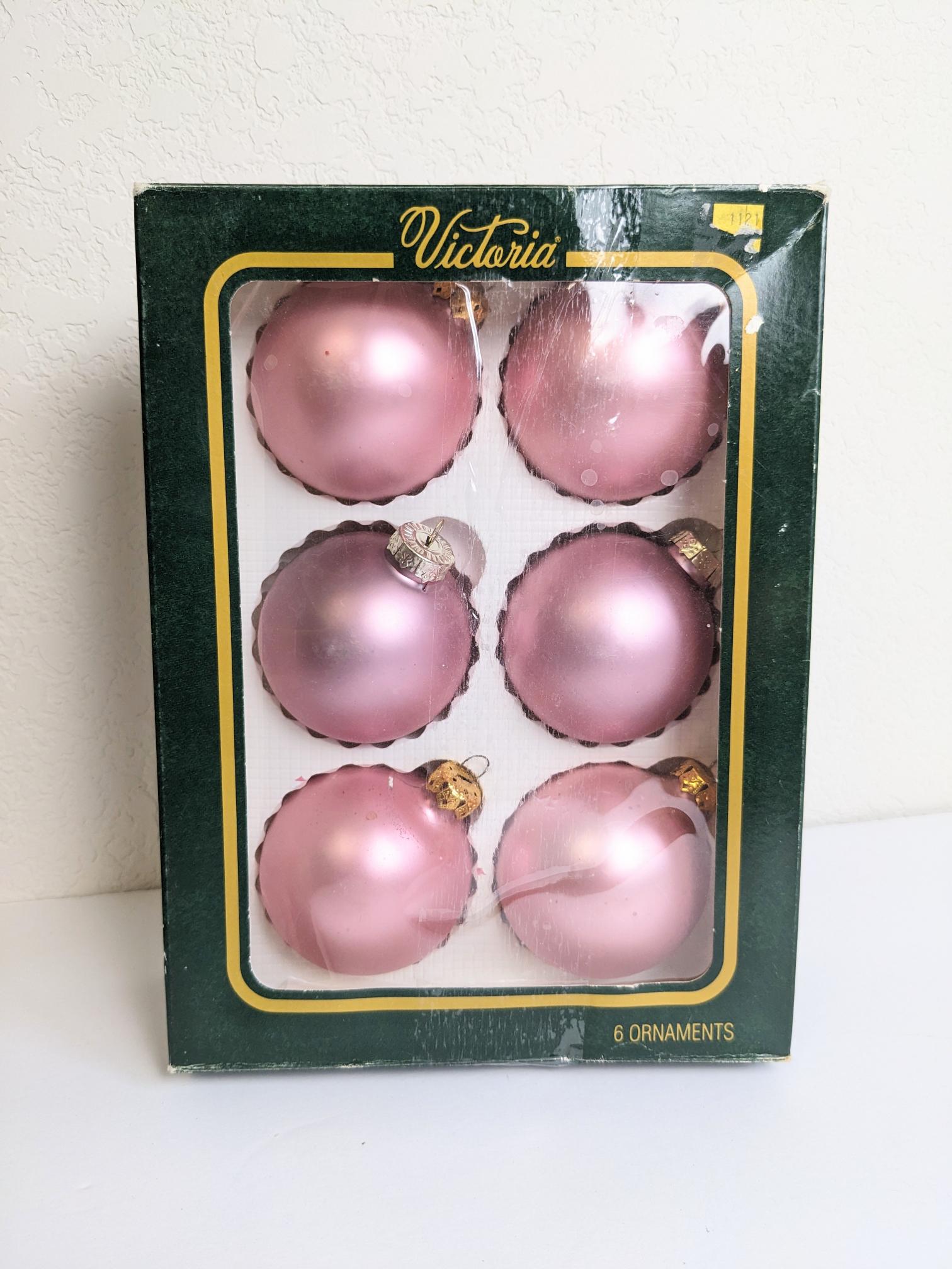 Vintage set of 6 Pink Glass Christmas Ornaments. These are absolutely gorgeous! Perfect shade of pink with beautiful crowns, very pretty. They are in great vintage condition with some crazing and spotting, no chips or cracks, please see all pictures.