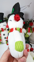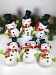 Vintage Set of 6 Plush Snowman Christmas Ornaments. These are so fun. Jolly snowman with brightly colored scarves and fun earmuffs and hats, they are very cute. Perfect for the snowman fan in your life and sure to spruce up any Christmas tree.