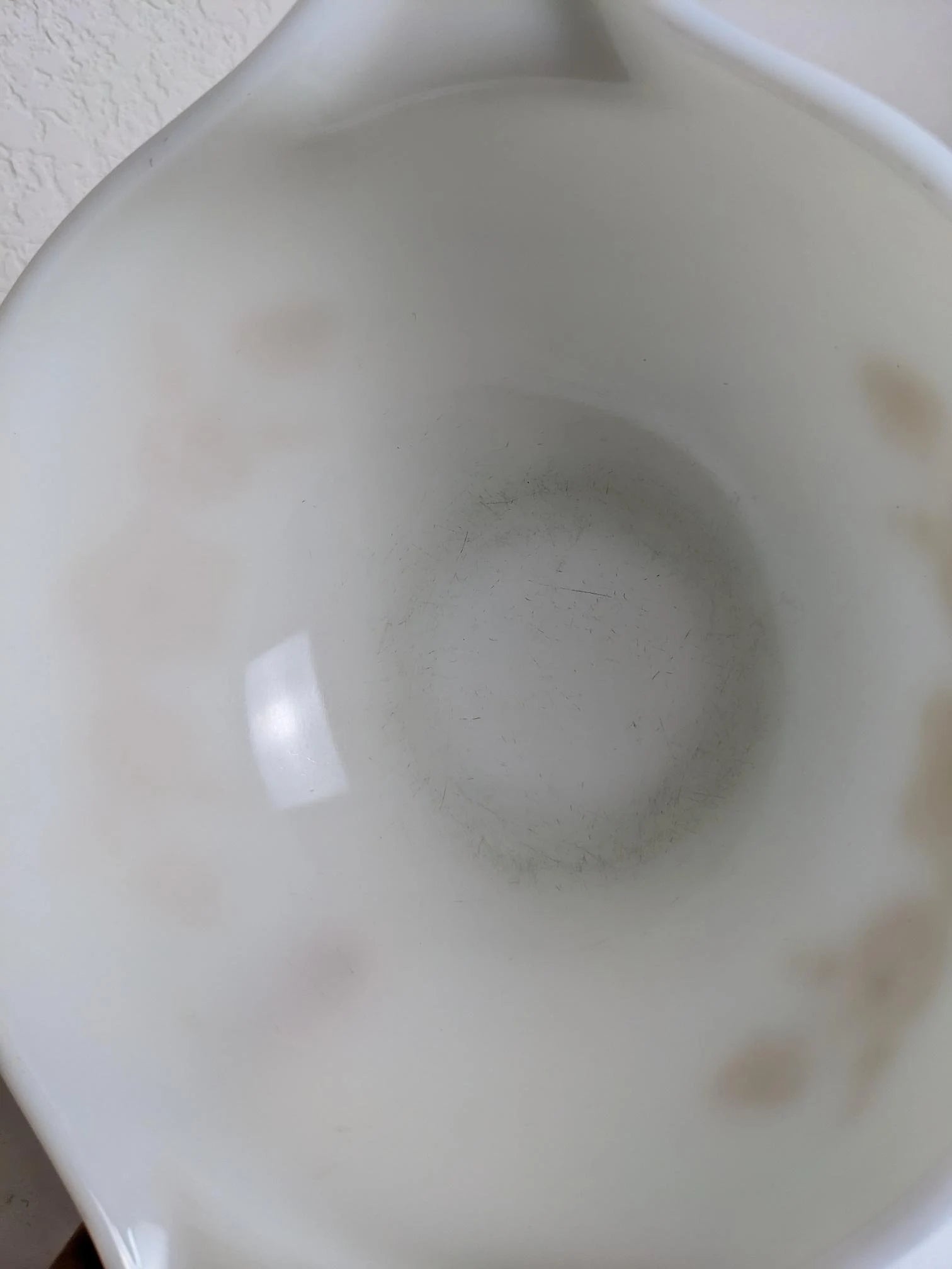 It is in great condition with wear from normal use and storage. All items are shipped with care and appropriate packing materials. It measures about 7 1/2" across (including the handles) and 3" tall. Perfect for your vintage Pyrex collection.