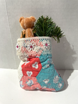 Unique Vintage Quilt Christmas stocking Ornament. One of a kind Vintage Christmas Stocking from the 1960's. In very good vintage condition. Would make a great addition to your vintage Decor or hang on your Mantle. Cute enough to hang on your Christmas Tree. Measuring 6" tall.