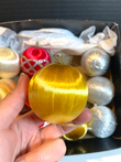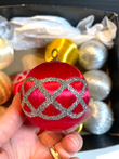 Set of 12 Vintage Colored Satin Christmas Ornaments.