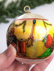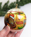 This is a rare find! This darling satin ornament features a mouse all snug in his bed, with his house beautifully decorated for Christmas, so cute! It is in great condition with slight fraying. Perfect for the vintage collector in your life.